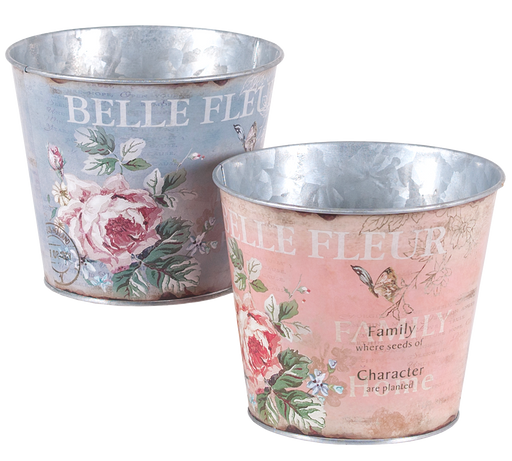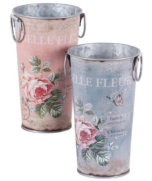 8.25" Rose Decoupage Metal Flower Bucket, 2 Assorted, 2/pk8% Off If You Order Now!