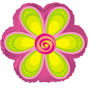 9" Foil Balloon - Retro Lime & Pink Daisy, 5/pk