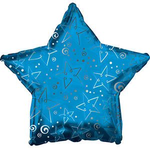 9" Foil Balloon - Blue Patterned Star, 5/pk