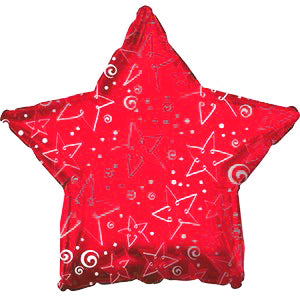 9" Foil Balloon - Red Patterned Star, 5/pk