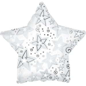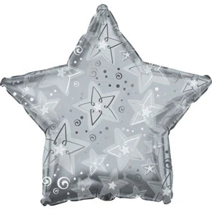 9" Foil Balloon - Silver Patterned Star, 5/pk