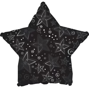 9" Foil Balloon - Black Patterned Star, 5/pk