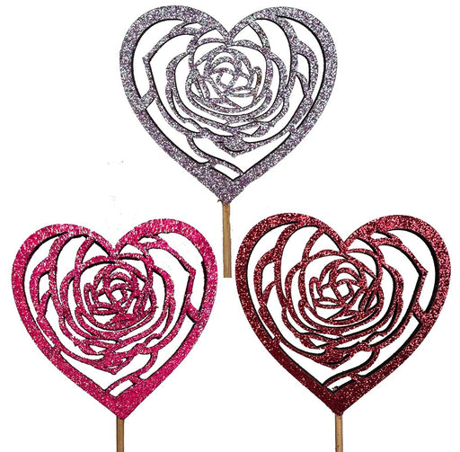 Red, Pink & Sliver Glittered Rose Cutout Pick, 12/pk