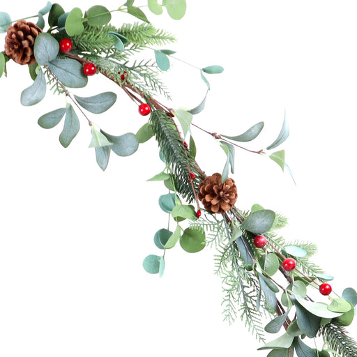 6' Holiday Eucalyptus, Pinecone & Red Berry Garland, 1/ea8% Off If You Order Now!