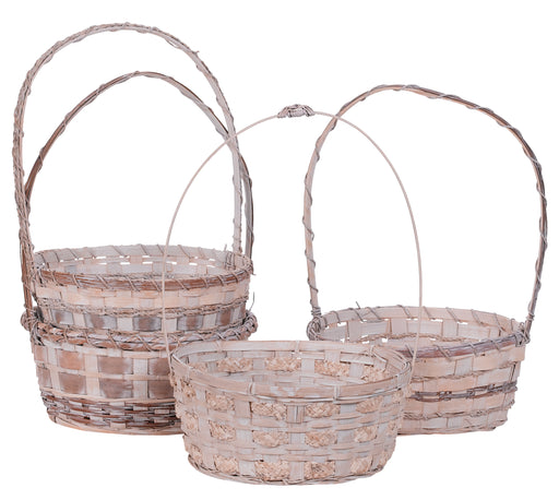 10" Round White Washed Fern & Grass Basket with Handle 4 Asst., 1/ea