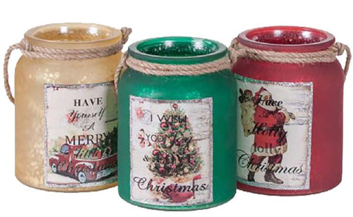 4.75" Vintage Christmas Vase w/LED and Rope Handle, 3Assorted, 6/cs