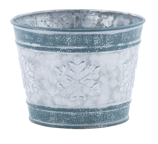 4.5" Blue Snowflake/Galvanized Metal Potcover, 1/ea8% Off If You Order Now!