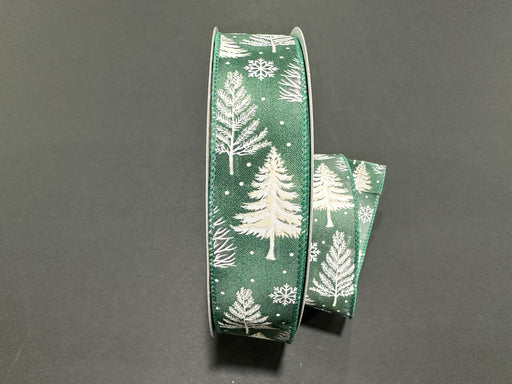 Snowy Trees on Sage Satin, 1.5" x 50yds, 1/rl