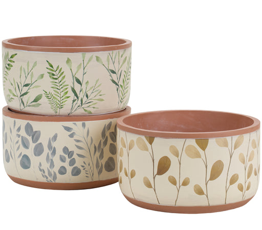 7" Cement Botanical Design Dish Garden Planter, 3 Assorted, 3/cs