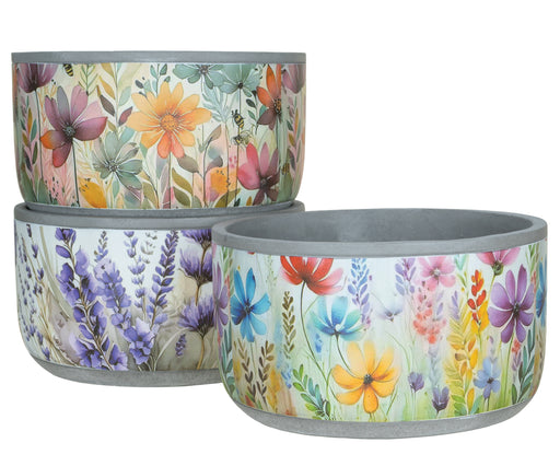 6" Cement Wildflower Planter, 3 Assorted, 3/pk