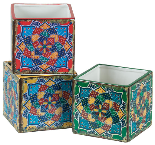 4.25" Amish Quilt Pottery Cube, 3/pk