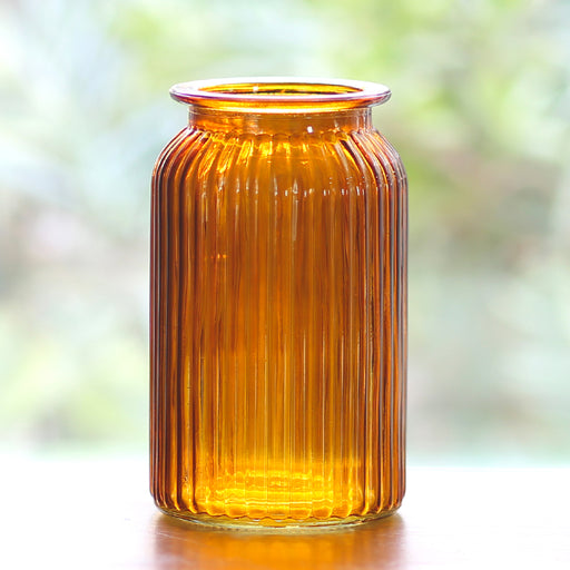 7.25" Amber Ribbed Jar, Opening: 3.75", 6/cs
