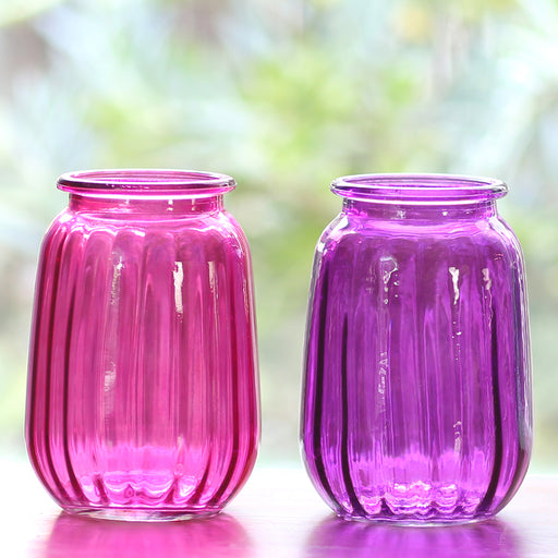 6.5" Pink/Hot Pink Gathering Vase, 2 Assorted, Opening: 4", 12/cs