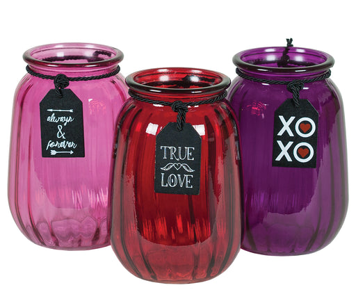 7" Optic Glass Ginger Jar, Red Pink & Purple with Valentine Dangler, Opening: 3¾", 12/cs