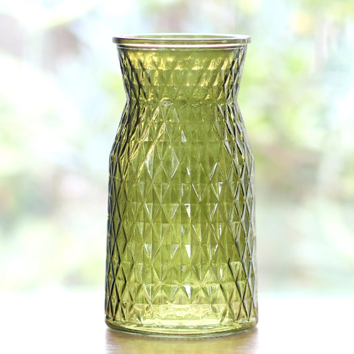 9.75" Diamond Cinch Vase, Green, Opening: 3.35", 6/cs
