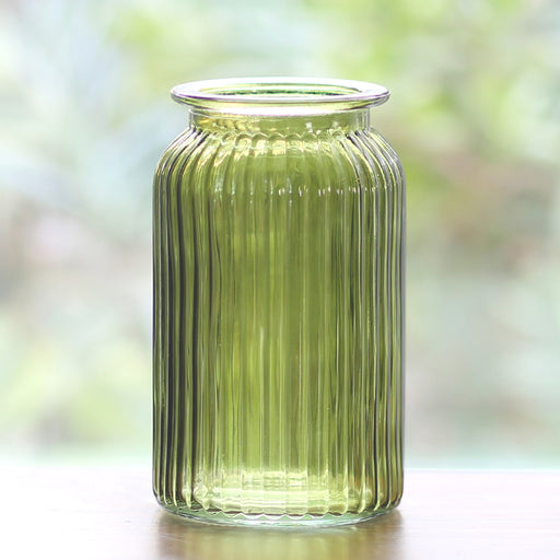 7.25" Moss Green Ribbed Jar, Opening: 3.75", 6/cs