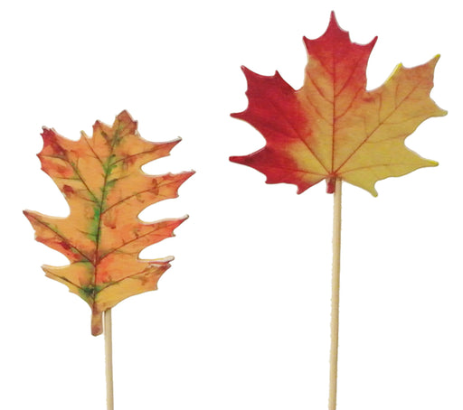 21" Wood Fall Leaves Pick, 2 Assorted, 12/pk