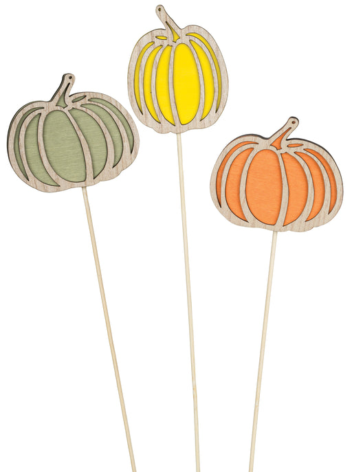 3.5" Wood Pumpkin Design Pick, 3 Assorted, 12/pk