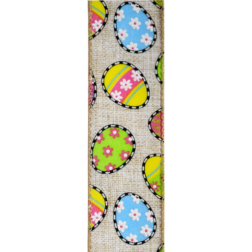Printed Natural Linen with Easter Eggs, 1.5" x 50yd, 1/rl8% Off If You Order Now!