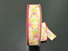 Title: Yellow Floral Bouquets on Yellow & White Chex Satin, 1.5" x 50yd, 1/rl