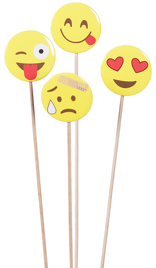 2.25" Yellow Metal Emoji Pin Pick on 18" Stick, 4 Assorted, 12/pkg