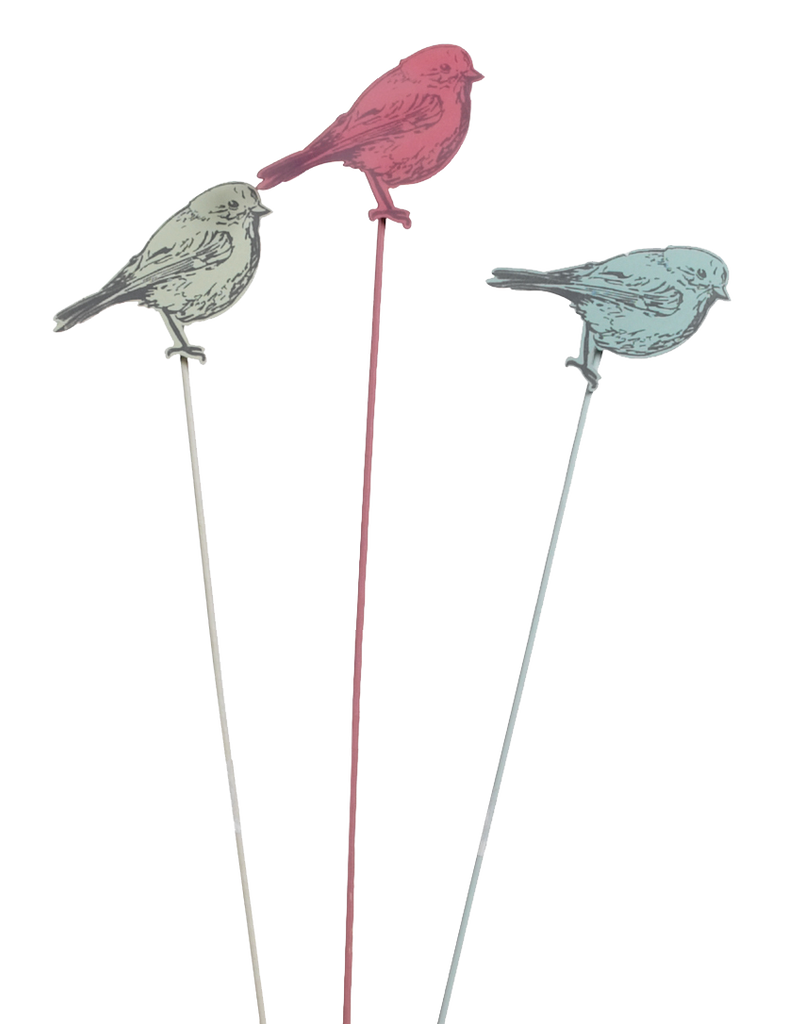 3" Wood Bird Pick, 4 Asst, 18" Stick, 12/pk